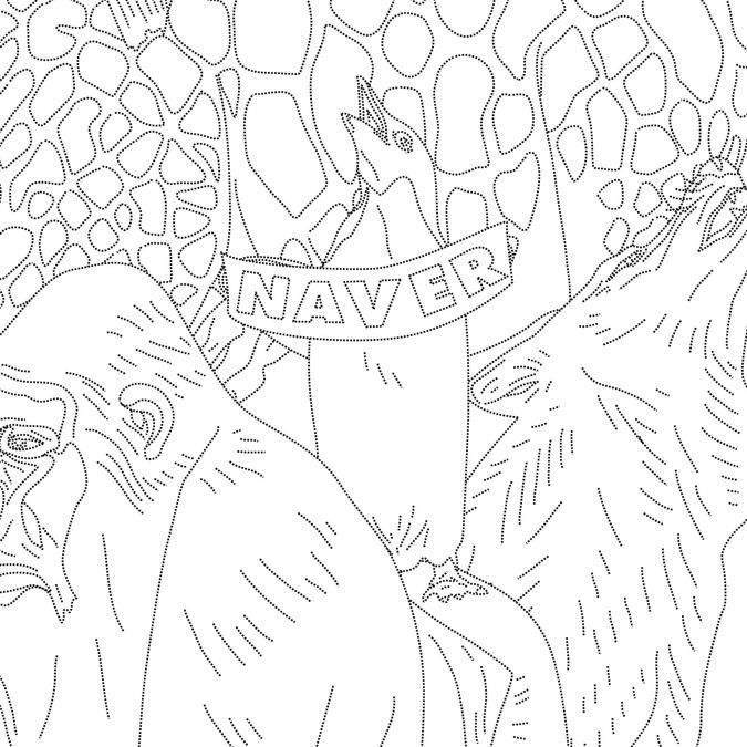Design your green thinking: 네이버, 환경을 생각하다 네이버(NAVER)에서 제작한 환경운동 중 하나인 '나눔글꼴에코'로 제작, 30%의 잉크를 절약할 수 있게 촘촘한 점선으로 드로잉한 작품 서울디자인페스티번 〈네이버〉 환경캠페인 콜라보레이션